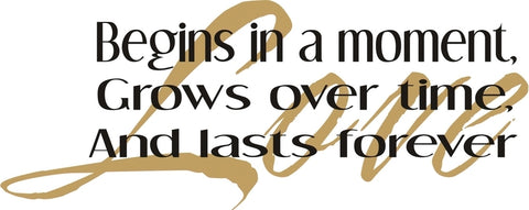 6” x 24” Two-Toned Rub-on Love in choice of color and Begins in a moment, Grows over time, And lasts forever in choice of color